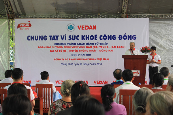 Ông Yang Kun Hsiang, Tổng Giám đốc Vedan Việt Nam chia sẻ: “Khám bệnh từ thiện là một trong những hoạt động thiết thực để Vedan Việt Nam có thể cải thiện đời sống người dân tại Đồng Nai. Đây cũng là cách để Vedan Việt Nam hướng nhân viên và các cấp lãnh đạo đến gần với mục tiêu nhân ái, đặt lợi ích của cộng đồng lên hàng đầu”.