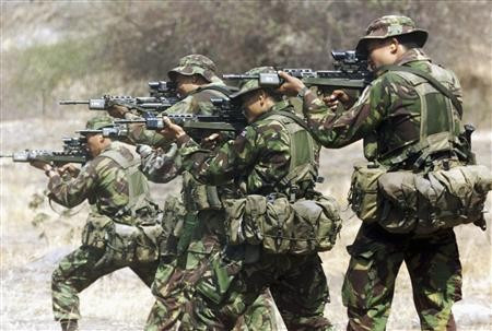 Hiện tại, chiến binh Gurkha phục vụ trong hàng ngũ quân đội Nepal, Anh và Ấn Độ. Sau khi Ấn Độ giành độc lập vào năm 1947, 6 trung đoàn Gurkha gia nhập quân đội nước này, còn 4 trung đoàn khác vẫn tiếp tục phục vụ trong Quân đội Hoàng gia Anh. Ảnh: Reuters.