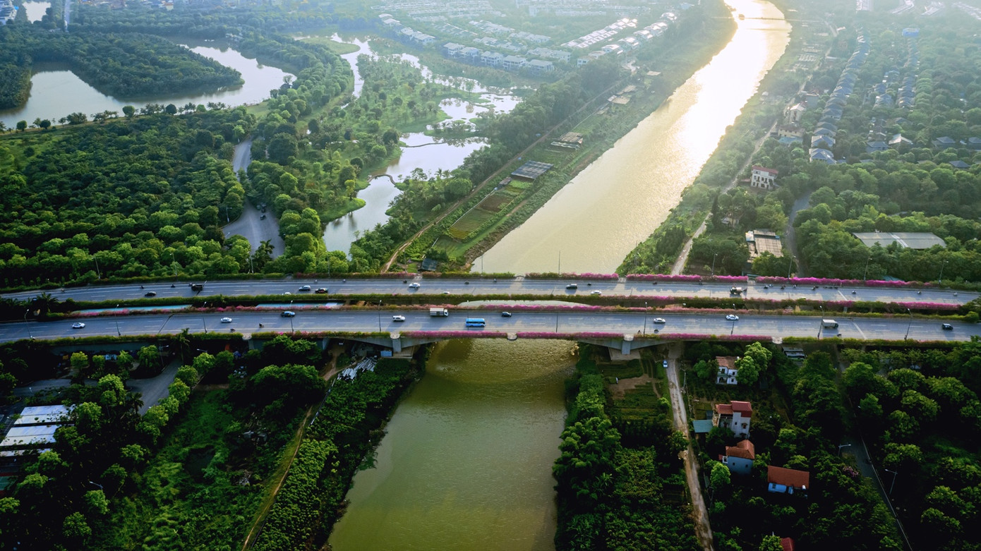 Những vệt hoa giấy “tô điểm” thêm nét lãng mạn cho Ecopark bên bờ Bắc Hưng Hải