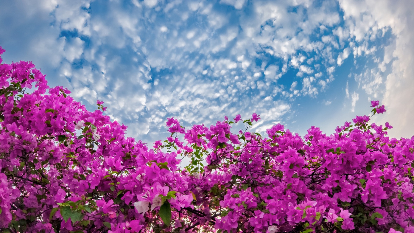 Hoa giấy nở tím trên nền trời xanh bao la tại Ecopark