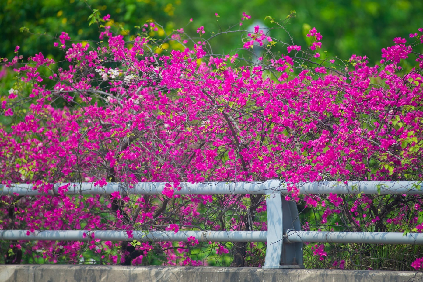 Cầu Bắc Hưng Hải mang trên mình những tán hoa giấy đẹp ngỡ ngàng