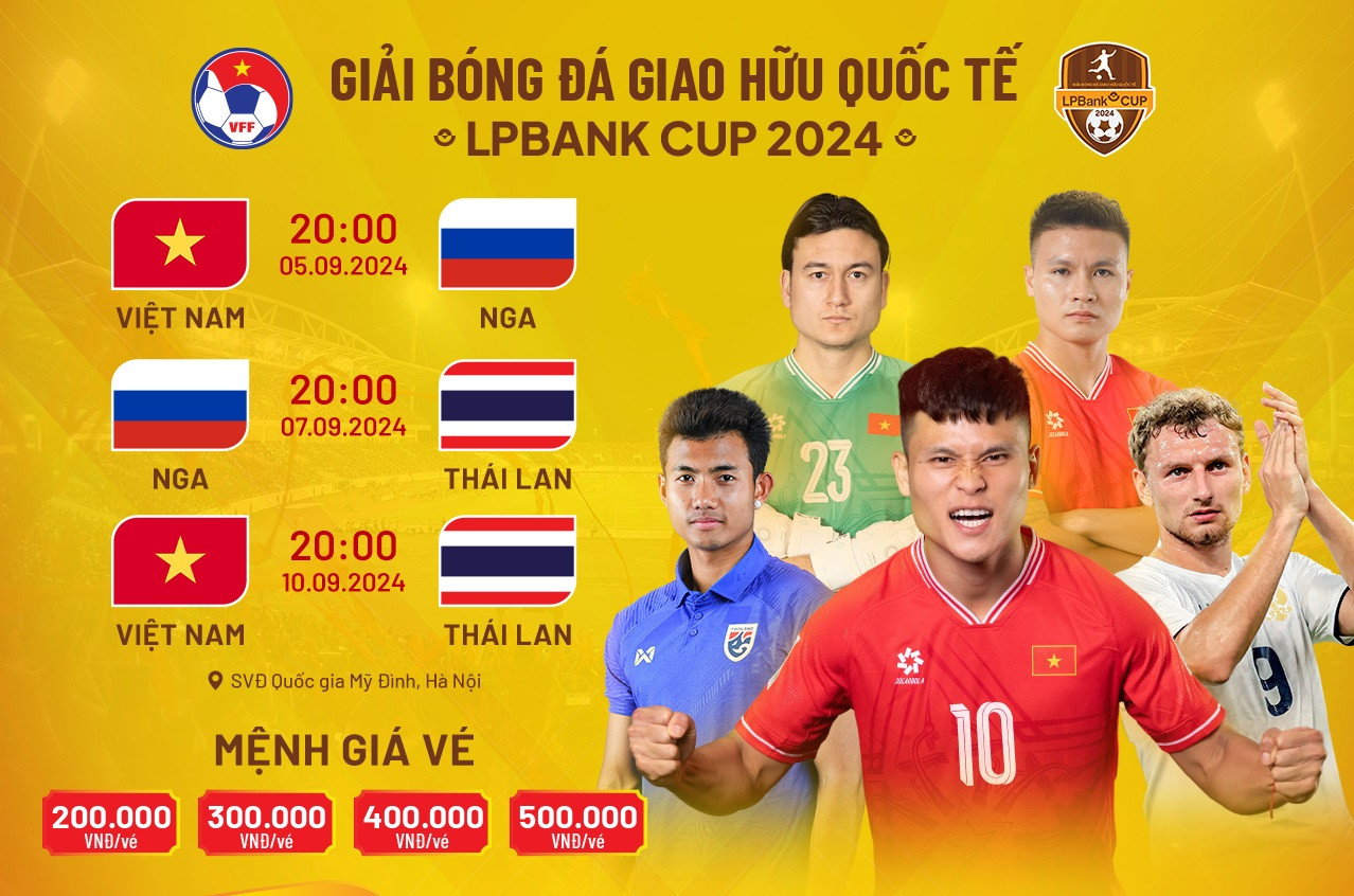 Giải LPBank Cup 2024 là giải giao hữu “tam hùng” giữa đội tuyển Việt Nam và hai khách mời bao gồm đội tuyển Nga và đội tuyển Thái Lan. Đây được xem là màn tập dượt chất lượng cao của thầy trò HLV Kim Sang-sik trước các mục tiêu quan trọng vào cuối năm nay và đầu năm 2025, bao gồm ASEAN Cup.