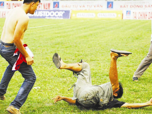 | Ẩu đả trên sân cỏ, đốt pháo sáng trên khán đài - Những hình ảnh tồi tệ của bóng đá Việt Nam 2008 Ảnh: Phạm Yên – Minh Hoàng |