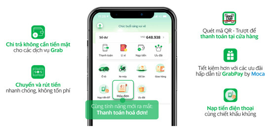 Các nhà cung cấp cũng hỗ trợ thanh toán bằng ví điện tử GrabPay by Moca với hóa đơn điện thoại trả sau của MobiFone và Vinaphone.