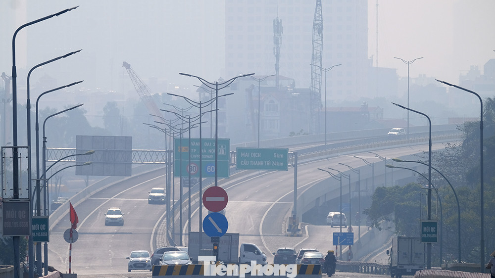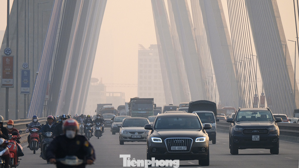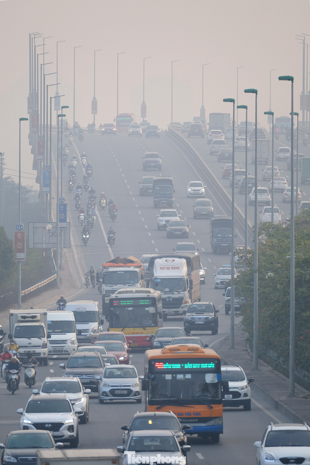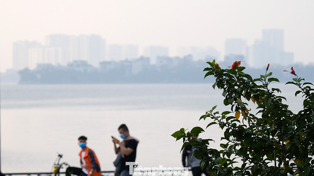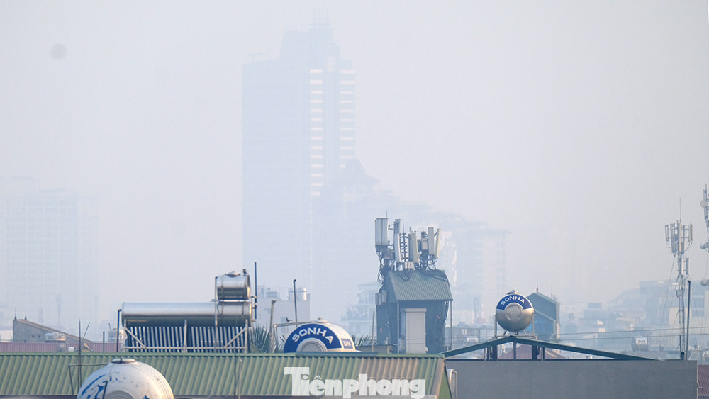 Ngay từ sáng sớm, sương mù bao phủ bầu trời Hà Nội khiến tầm nhìn hạn chế.