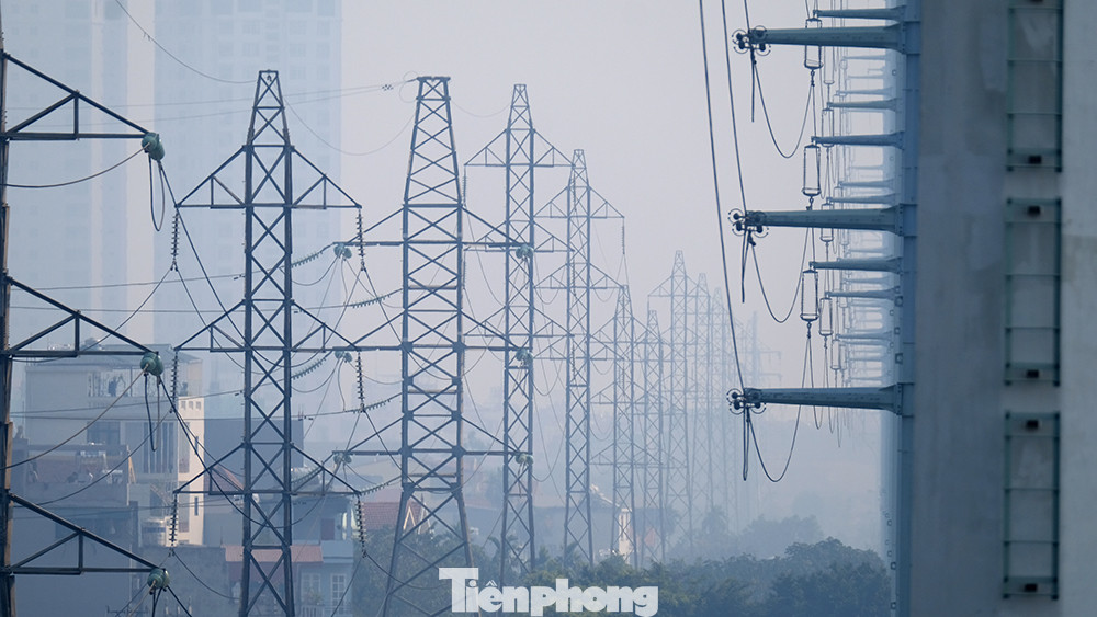 Hàng cột điện cao thế như ẩn mình trong bụi sương.