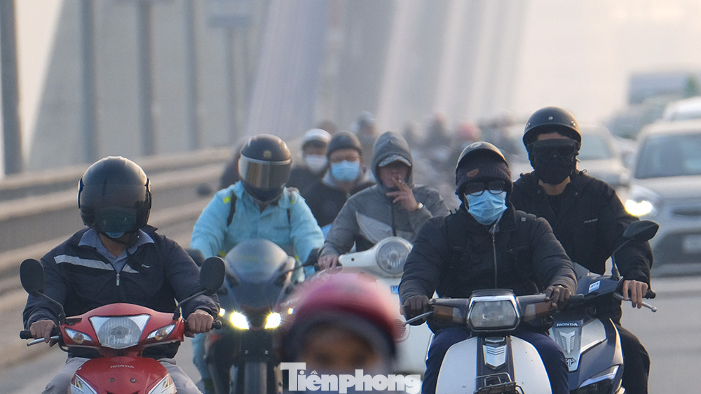 Trên cầu Nhật Tân vào đầu giờ sáng nay.