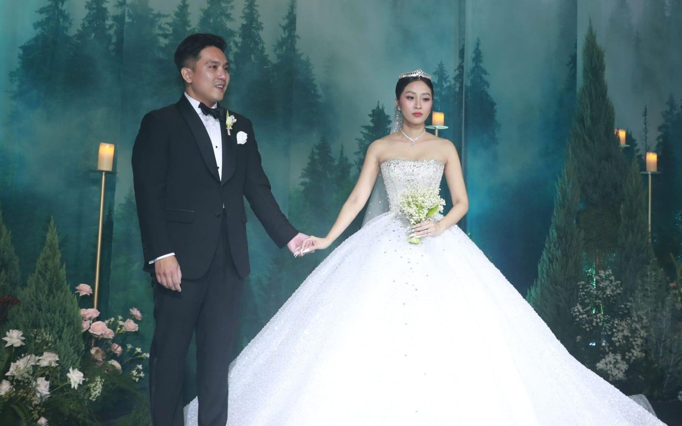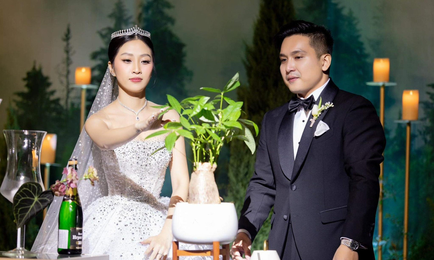 Ngay từ khâu chụp ảnh cưới, MC Liêu Hà Trinh đã lấy cảm hứng từ cuốn tiểu thuyết Rừng Na Uy. Và khung cảnh hôn lễ của cô cũng tràn ngập màu xanh như đang ở trong một cánh rừng. Trong hôn lễ, thay vì nghi thức cắt bánh cưới như nhiều người thì Liêu Hà Trinh cùng chồng lại cầm chiếc bình tưới vào một chậu cây.