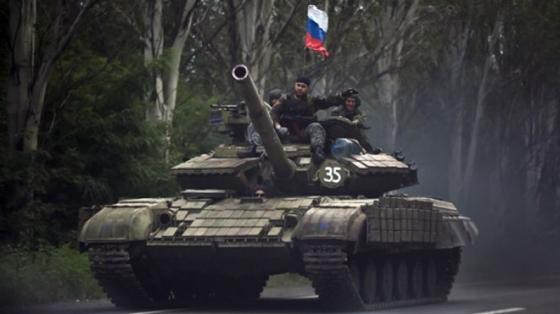 Một chiếc xe bọc thép của ly khai treo cờ Nga ở miền Đông Ukraine.