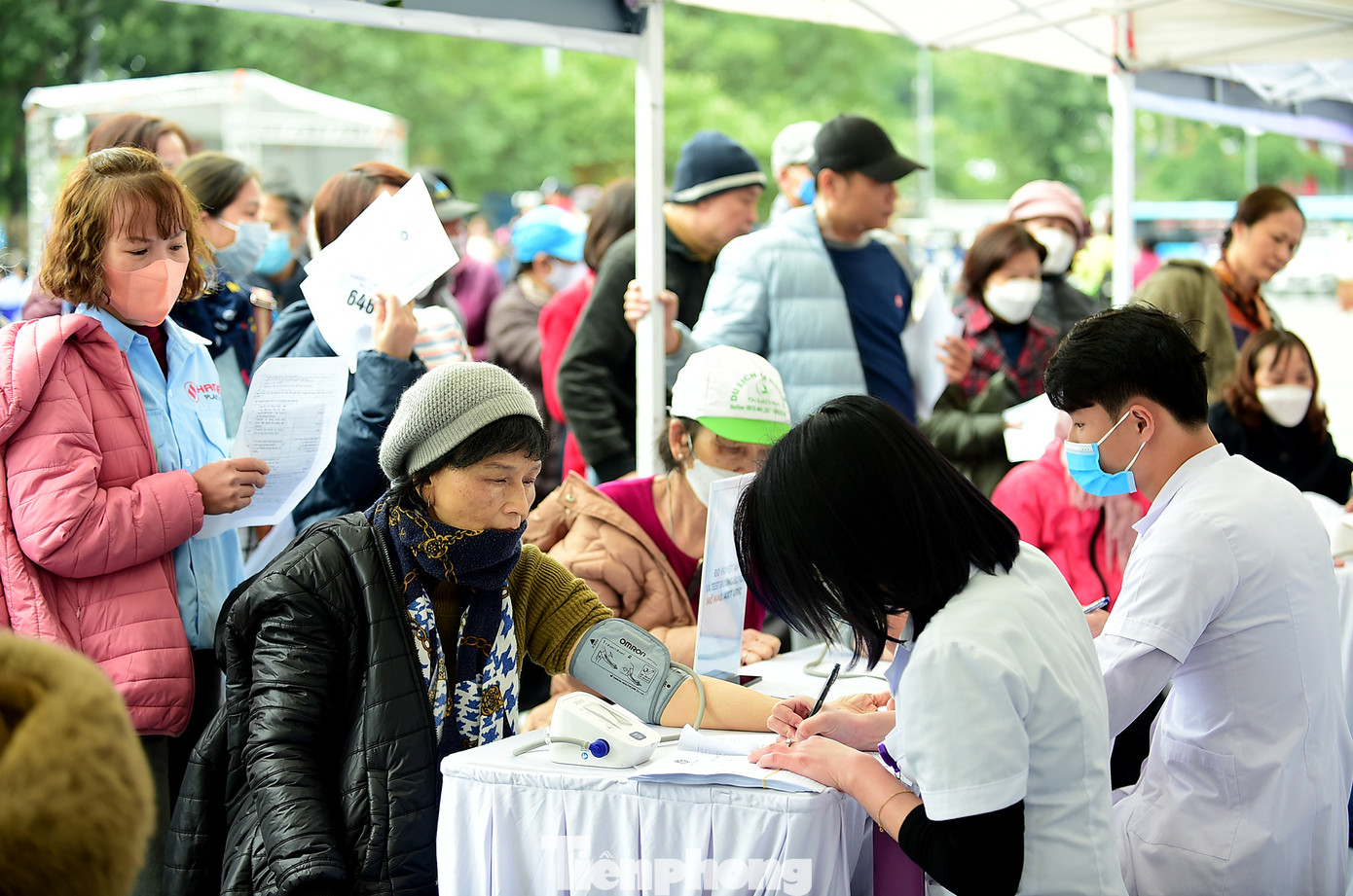 | Người dân tham gia khám sàng lọc các bệnh lý về phổi tại chương trình. Ảnh: Xuân Tùng |