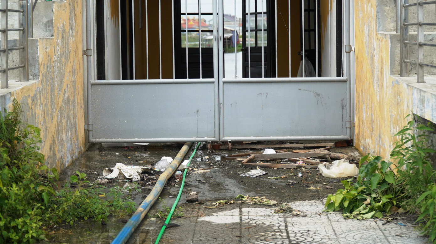 Rác tồn đọng trên lối đi từ phòng thay đồ ra sân bóng.