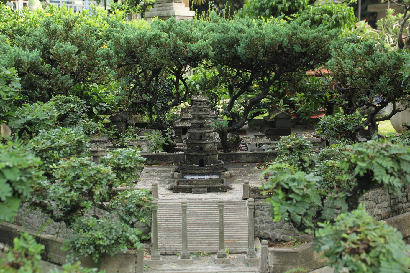 | Hệ thống cây xanh, bonsai cũng được TS. Nguyễn Thanh Tùng quy hoạch trồng ngay từ những ngày đầu để đồng bộ với không gian chung của công trình. Có một số cây như phượng, bồ đề... được mang từ Huế vào, trong khi đó, cây liễu rủ có nguồn gốc từ Đà Lạt... |