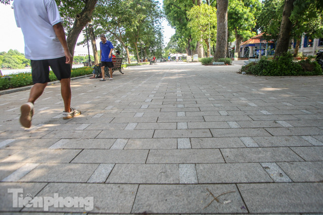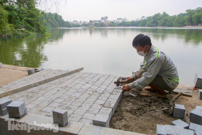 Quận Hoàn Kiếm quận bắt đầu tiến hành lát đá toàn bộ vỉa hè, đường dạo quanh Hồ Gươm từ cuối tháng 5 bắt đầu từ nhà hàng Thủy Tạ bằng đá hoa cương (đá granite). Loại đá này có xuất xứ từ Bình Định, Phú Yên đáp ứng các tiêu chí: thẩm mỹ, an toàn, không trơn trượt khi trời mưa và bền vững. Mỗi hạng mục khác nhau sẽ sử dụng viên phù hợp kiểu dáng, hình dạng ở đó. Loại đá nhỏ nhất có khối lập phương 10x10x10cm, trọng lượng 3kg, có phiến đá lên đến gần 100kg.
