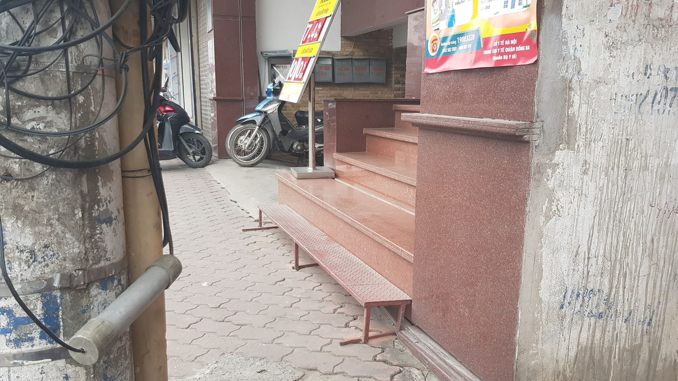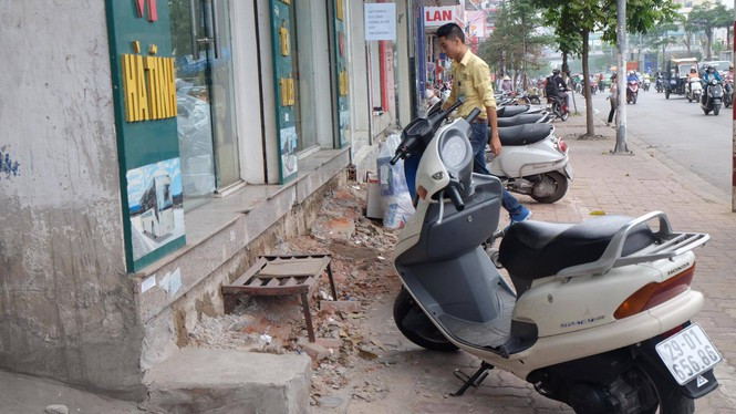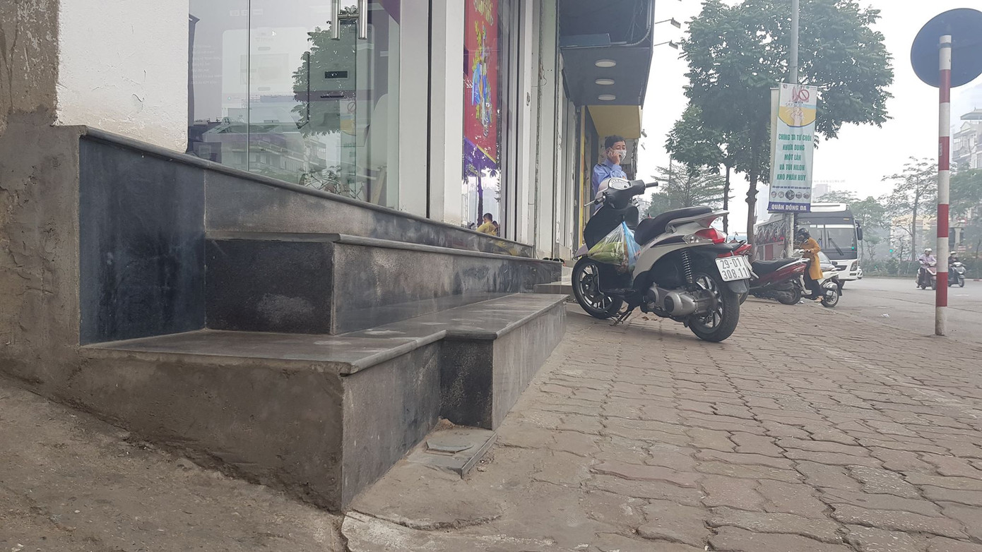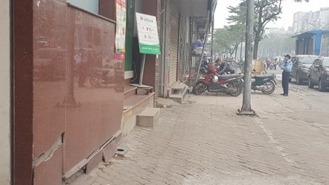 Hình ảnh 3 năm trước khi cơ quan chức năng phá các bậc tam cấp lấn chiếm vỉa hè, người dân phải bắc bục sắt, hoặc bao cát để vào nhà.