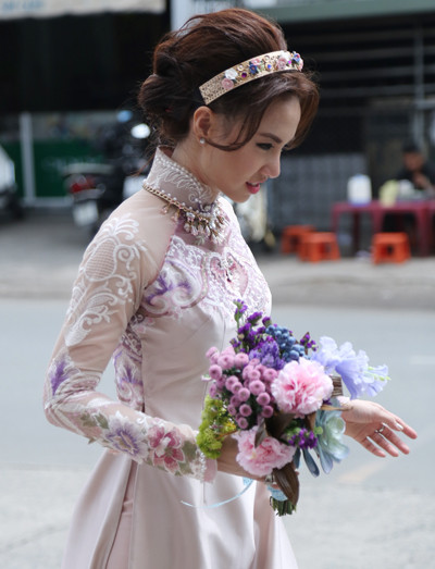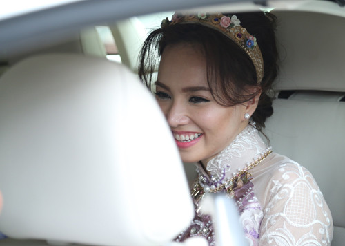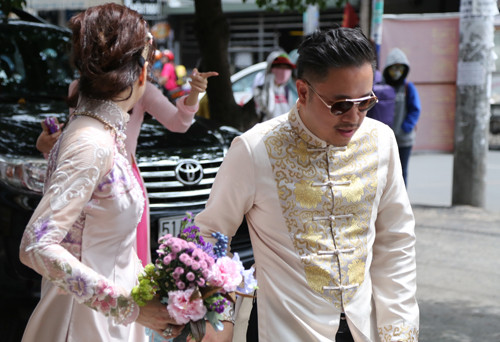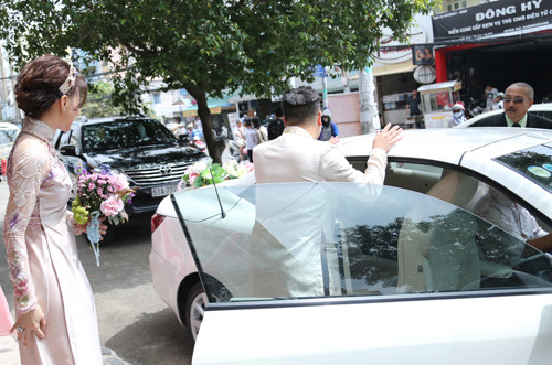 Anh dắt tay Đinh Ngọc Diệp ra xe sau khi hoàn thành nghi lễ.