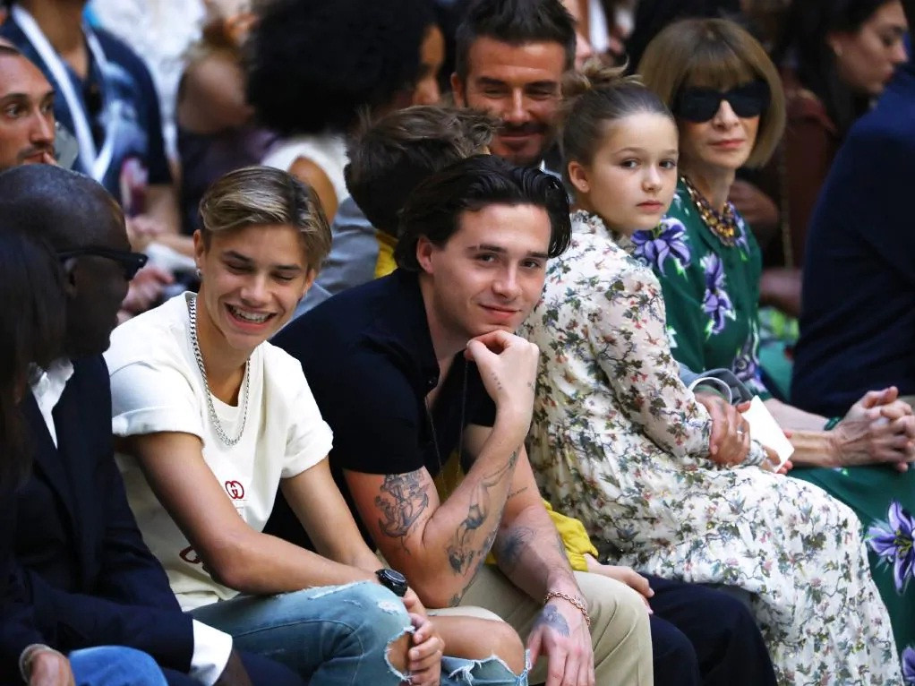Cha con nhà Becks nổi bật trên hàng ghế khán giả cùng tổng biên tập tạp chí Vogue - bà Anna Wintour.
