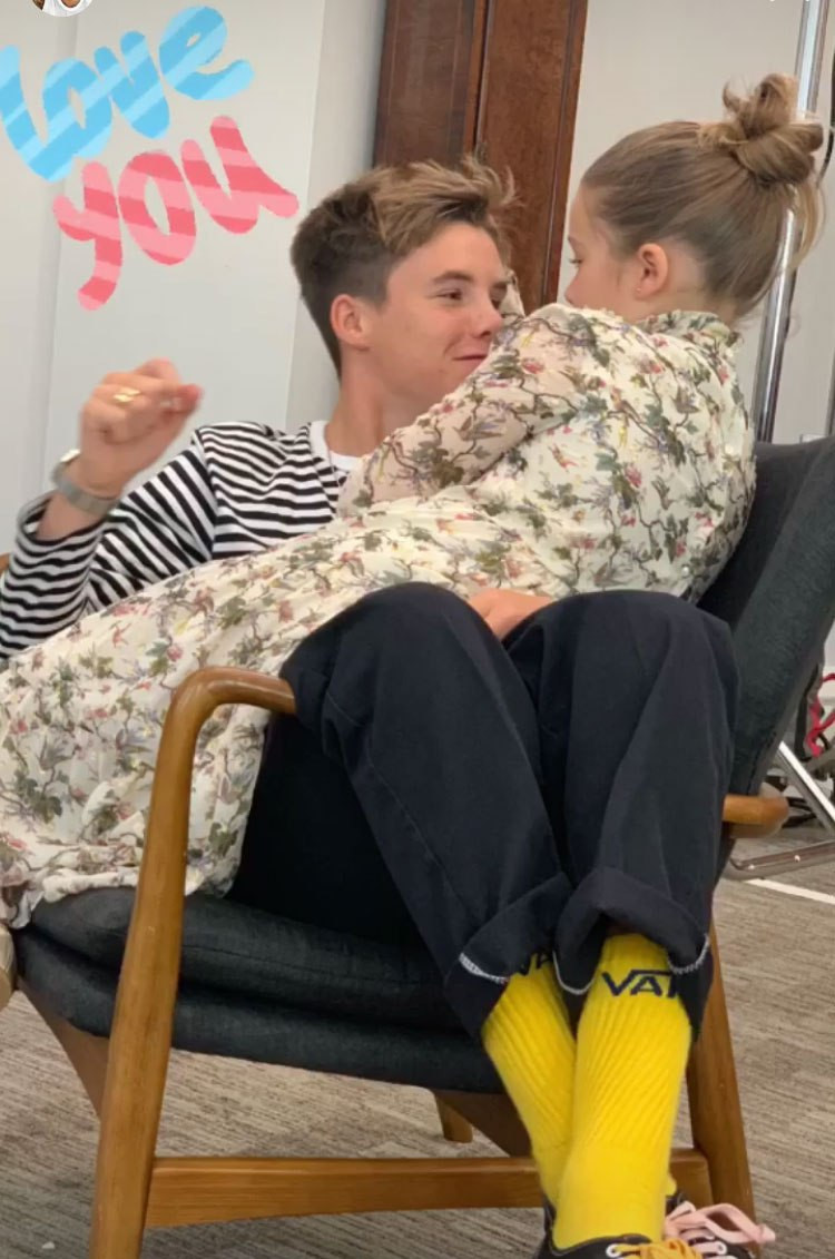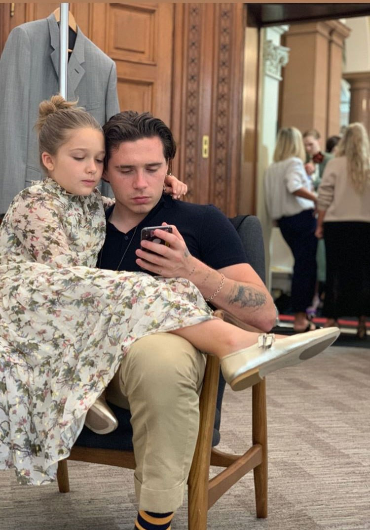 Cô nhóc 8 tuổi ngồi trong lòng anh cả Brooklyn...