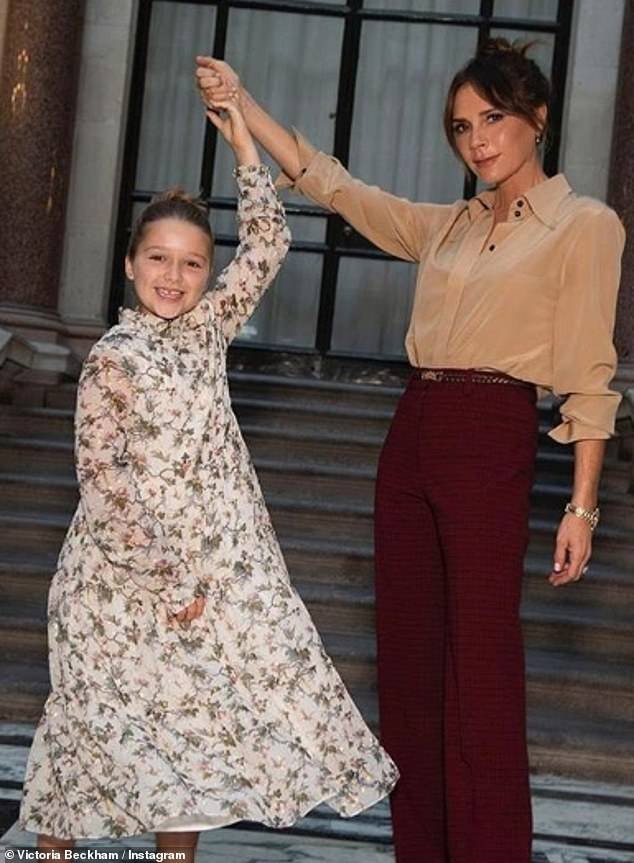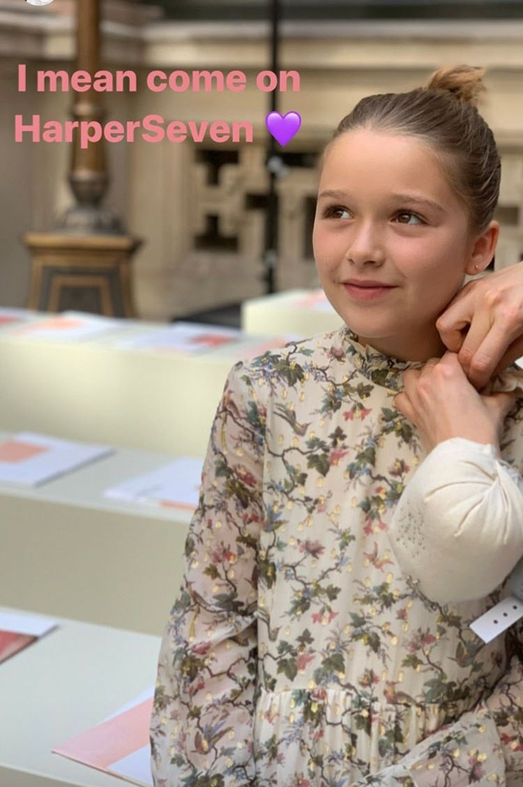 Công chúa út Harper diện váy hoa đến dự show thời trang của mẹ.