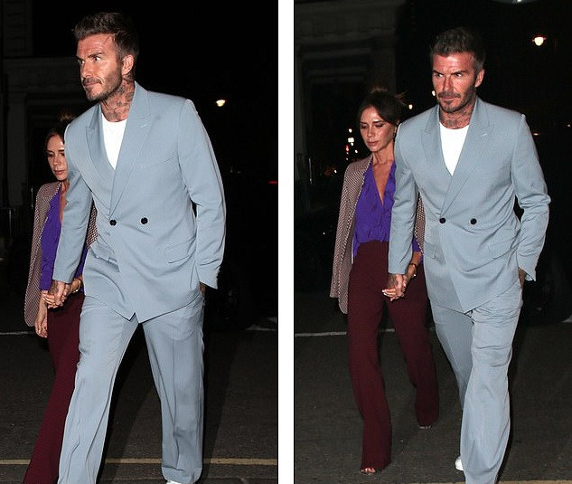 David Beckham nắm chặt tay vợ rời bữa tiệc mừng thành công show thời trang của cô.