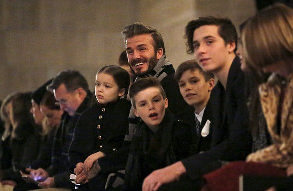 Gia đình Beckham nổi bật và thu hút sự chú ý khi xuất hiện trên hàng ghế đầu trong show của Victoria Beckham.
