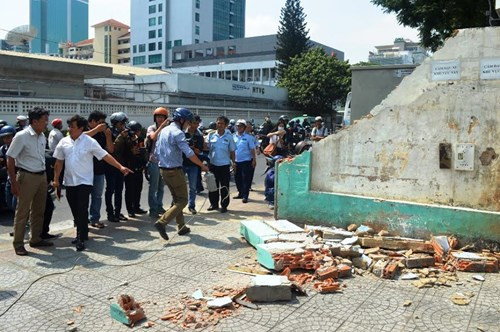 Tiếp tục đòi vỉa hè: Quận 1 đập tường trước trụ sở Bộ Công Thương, cẩu xe VTV. (XEM VIDEO)