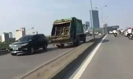 Xe chở rác ngang nhiên đi ngược chiều trên cầu vượt Hà Nội (XEM VIDEO)