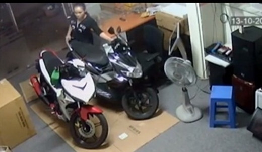 Thấy không có ai trong nhà, nữ quái lẻn vào lấy trộm chiếc xe máy đắt tiền. Chỉ trong thời gian ngắn, bà ta đã dắt được xe ra ngoài và tẩu thoát.