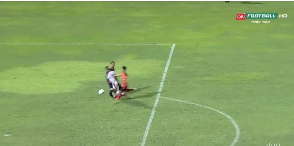 Trong đoạn video quay chậm, chân của Thanh Bình dường như đã bị gãy gập. Đó là thời điểm mà Viettel đang dẫn trước đội chủ nhà Đà Nẵng nhờ bàn thắng của Geovane.
