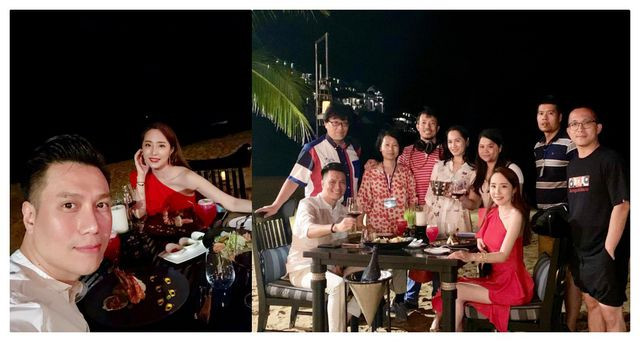 Bức ảnh bữa ăn của chúng tôi bên bãi biển thực chất không phải một bữa ăn riêng tư gì mà có cả một ê-kíp phía sau. Đây là hậu trường một chương trình truyền hình thực tế mà chúng tôi cùng tham gia.