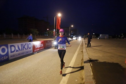 Tại buổi thi đấu rạng sáng nay, nữ VĐV sinh năm 1985 này đã hoàn thành đường chạy 42 km với thời gian 3 giờ 57 phút- một kết quả khá tốt đối với một VĐV không chuyên như chị.