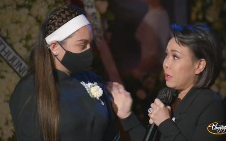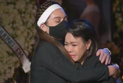 Cũng tại tang lễ, Việt Hương nức nở xin lỗi con gái Phi Nhung vì không thể đưa cô nguyên vẹn trở về. Nữ danh hài day dứt vì từ chối lời đề nghị Mỹ tham gia show diễn cùng Phi Nhung. "Trước cái show vào 22/8 tại Mỹ, show đó đáng lẽ Việt Hương cũng về với Phi Nhung mà Hương từ chối. Hương sợ về xong quay lại sẽ ngắt quãng thời gian làm từ thiện. Lúc đó, Phi Nhung nói với Hương: “Tôi sẽ ở lại với bà” rồi Nhung ở lại luôn. Nếu Hương đi cái show đó thì hai đứa đã bay về. Ngày 7/9, là ngày Phi Nhung đặt máy ECMO thì một ngày trước đó Phi Nhung tỉnh, cô ấy viết vào tờ giấy là muốn ăn khoai lang mà Hương khóc quá trời. Một ngôi sao hạng A mà chỉ muốn ăn món đó. Tôi hỏi bác sĩ nhưng bác sĩ nói không ăn được đâu Hương".