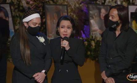 Đứng bên cạnh Việt Hương là ông xã Hoài Phương và con gái ruột ca sĩ Phi Nhung - Wendy. Việt Hương bộc bạch: “Hương muốn Wendy đứng kế vì cả một hành trình vừa qua của hai cô cháu và những tin nhắn trong vòng 1 tháng khi Phi Nhung điều trị ở Bệnh viện Chợ Rẫy vào 6h18p mỗi sáng và mỗi buổi tối. Lúc đó là 4h sáng của Wendy, Việt Hương sẽ được ekip thông báo, những từ tiếng Việt thì Hương hiểu ngay nhưng có những chuyên môn trong y khoa bằng tiếng Anh thì anh Phương sẽ nói để Wendy hiểu.