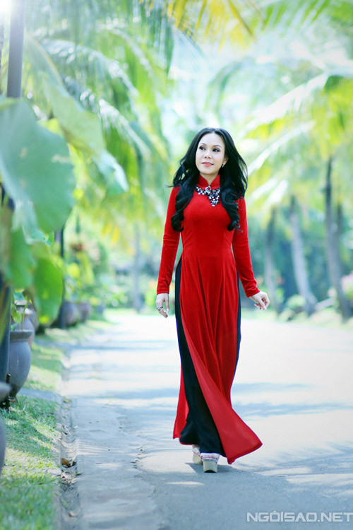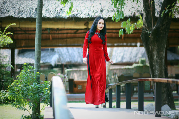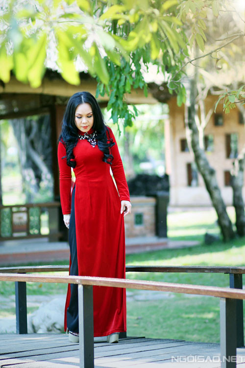 Khán giả vốn quen thuộc với hình ảnh Việt Hương lúc nào cũng mạnh mẽ, sôi nổi khi hóa thân thành những người phụ nữ nhà quê. Tuy nhiên, chị bất ngờ thay đổi hình ảnh khi diện áo dài đỏ trong loạt ảnh mới.
