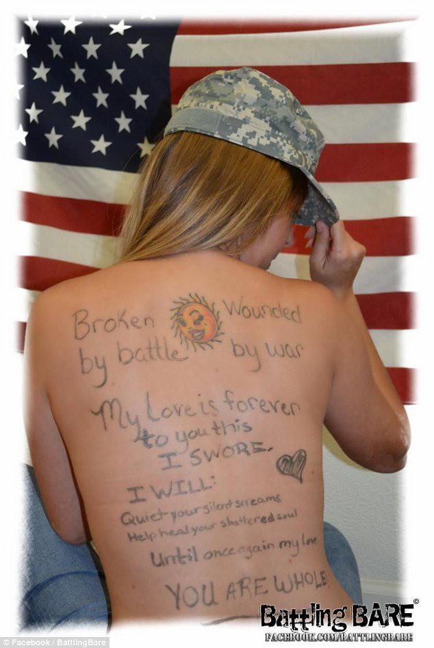 Từ đó, cô nghĩ cách tìm lối thoát cho cuộc sống bế tắc và để thể hiện tình yêu, lòng sẻ chia đối với chồng, cô mặc bộ quân phục của chồng và viết lên lưng những thông điệp. Cô chụp ảnh và đăng tải lên trang mạng xã hội Facebook.