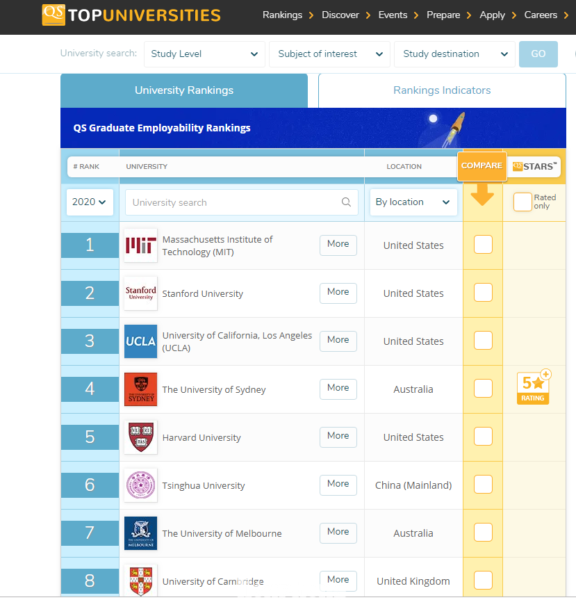 Năm nay, Bảng xếp hạng QS GER được thực hiện trên cơ sở dữ liệu của 2.100 đại học đến từ 132 vùng, lãnh thổ. Theo đó, 750 trường được xem xét, 680 trường được xếp hạng và 501 trường được vinh danh (top 500) với 36 trường lần đầu tiên xuất hiện trong bảng xếp hạng này. Trong Top 10 của bảng xếp hạng này, có 4 đơn vị đến từ Mỹ (trong đó Viện Kỹ thuật Massachusetts và ĐH Stanford đứng đầu), ngoài ra còn có các đại diện đến từ Anh, Úc, Trung Quốc và Hong Kong.