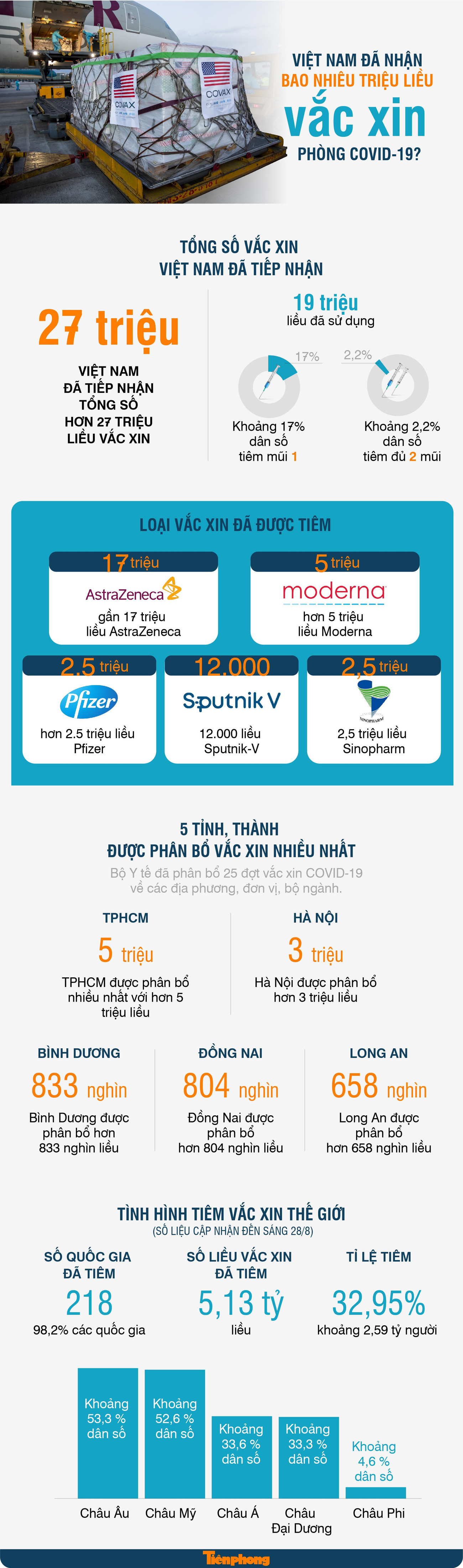 TPO - Cho đến nay Việt Nam đã tiếp nhận tổng số hơn 27 triệu liều vắc xin. Trong đó đã sử dụng khoảng 19 triệu liều.