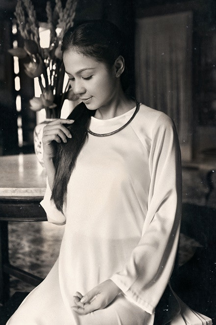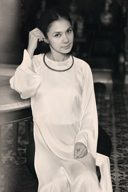 Nhà thiết kế Nhật Dũng hỗ trợ chị bộ áo dài theo phong cách của phụ nữ xưa.