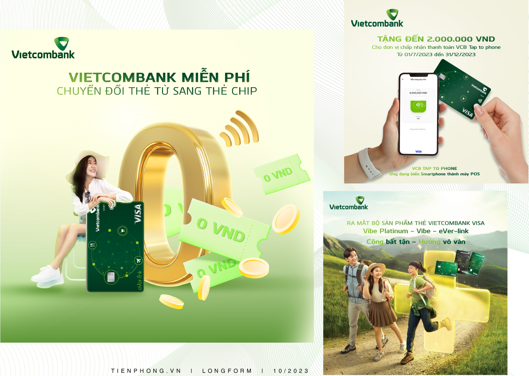Năm 2019, Vietcombank phát hành và thanh toán thẻ chip contactless – tạo tiền đề cho sự phát triển bùng nổ của các giải pháp thanh toán bằng thiết bị di động dựa trên công nghệ NFC. Năm 2021, Vietcombank triển khai mở tài khoản thanh toán với giải pháp định danh trực tuyến eKYC và phát hành thẻ phi vật lý, đánh dấu mốc cho việc số hóa hành trình đăng ký các dịch vụ ngân hàng.