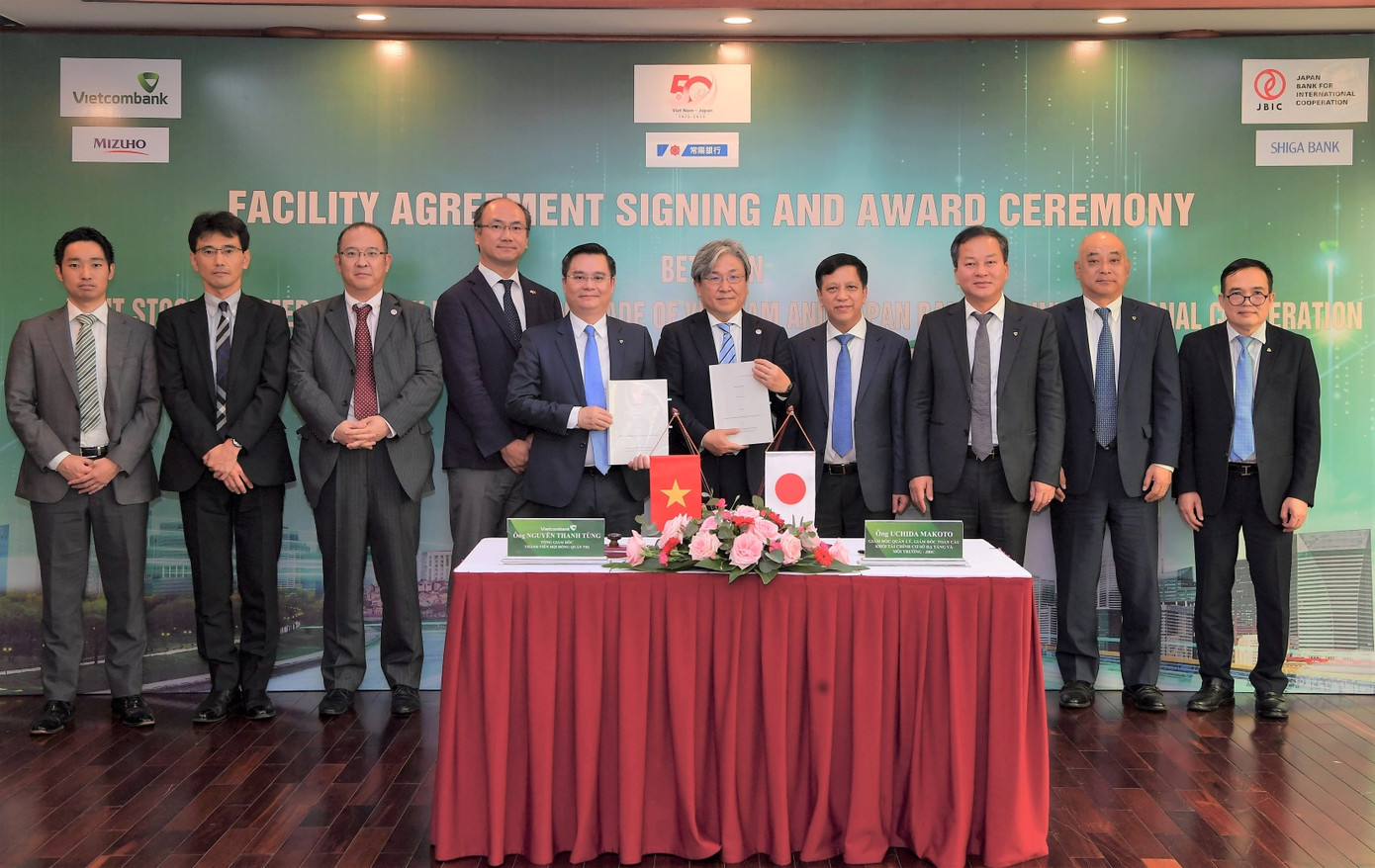 Nhân dịp kỷ niệm 60 năm ngày thành lập Vietcombank và 50 năm quan hệ hữu nghị Việt Nam - Nhật Bản, nhằm ghi nhận những đóng góp tích cực của Vietcombank đồng thời khẳng định quan hệ hợp tác chặt chẽ giữa JBIC với Vietcombank trong việc góp phần phát triển kinh tế bền vững, thúc đẩy hội nhập khu vực và bảo vệ môi trường tại Việt Nam, JBIC đã trao kỷ niệm chương “Đối tác chủ chốt trong việc phát triển các dự án xanh tại Việt Nam” cho Vietcombank, đánh dấu sự hợp tác hiệu quả giữa hai bên trong việc phát triển các dự án xanh tại Việt Nam.