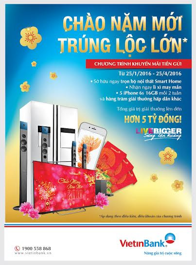 Hãy tham gia Chương trình ngay từ hôm nay để “Chào năm mới - Trúng lộc lớn” cùng VietinBank với trên 5 tỷ đồng quà tặng hấp dẫn.