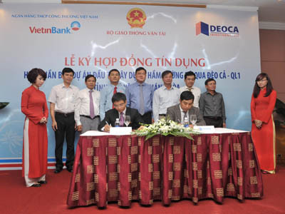 TPO - VietinBank và Công ty CP Đầu tư (CPĐT) Đèo Cả vừa ký hợp đồng tín dụng tài trợ Dự án đầu tư xây dựng hầm đường bộ qua Đèo Cả - Quốc lộ 1, tỉnh Phú Yên và Khánh Hòa theo hình thức BOT.