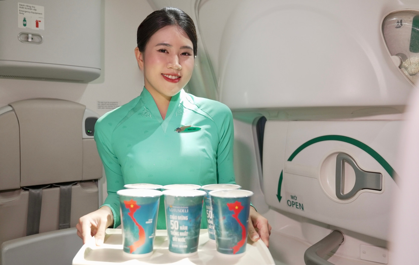 Hôm nay, giữa bầu trời thanh bình, hình ảnh đất nước in trên chiếc cốc xanh mát – màu của trời cao và sự sống – hòa quyện cùng biểu tượng lịch sử, gợi nhắc sợi dây nối liền giữa quá khứ và hiện tại. Một chi tiết nhỏ nhưng đủ khiến hành khách bất ngờ, thích thú khi nâng ly giữa tầng không.