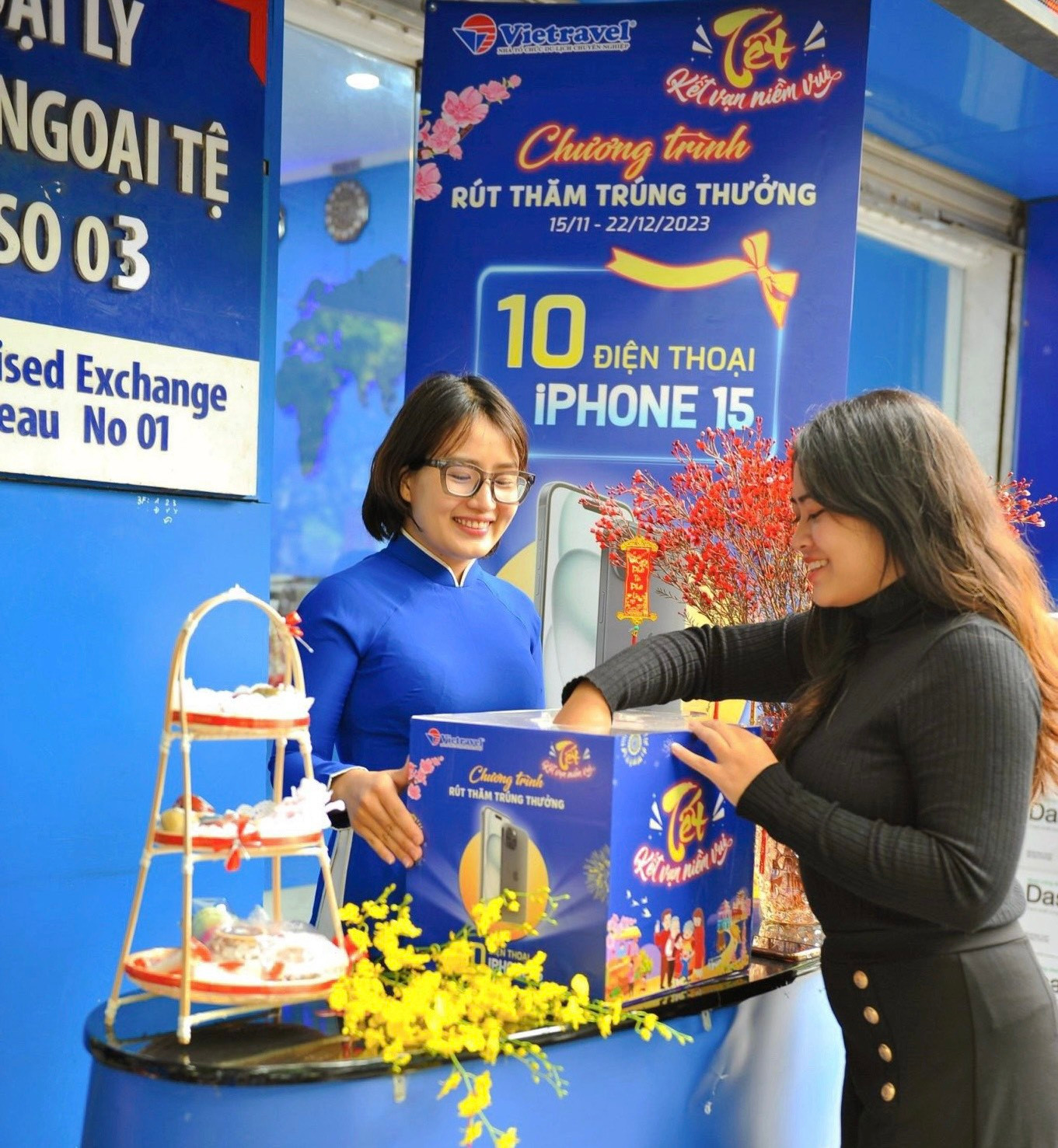 Đặc biệt, khuyến mại Xuân năm nay từ Vietravel còn có chương trình rút thăm trúng thưởng với quà tặng siêu khủng: iPhone 15 - thế hệ iPhone mới. Khi khách hàng mua và thanh toán tour trong thời gian từ 15/11 đến hết 22/12/2023, với mỗi giá trị thanh toán 15 triệu, sẽ nhận về 01 phiếu rút thăm trúng thưởng. Vietravel bật mí rằng cơ hội trúng IPhone 15 sẽ dành cho 10 khách hàng may mắn nhất.