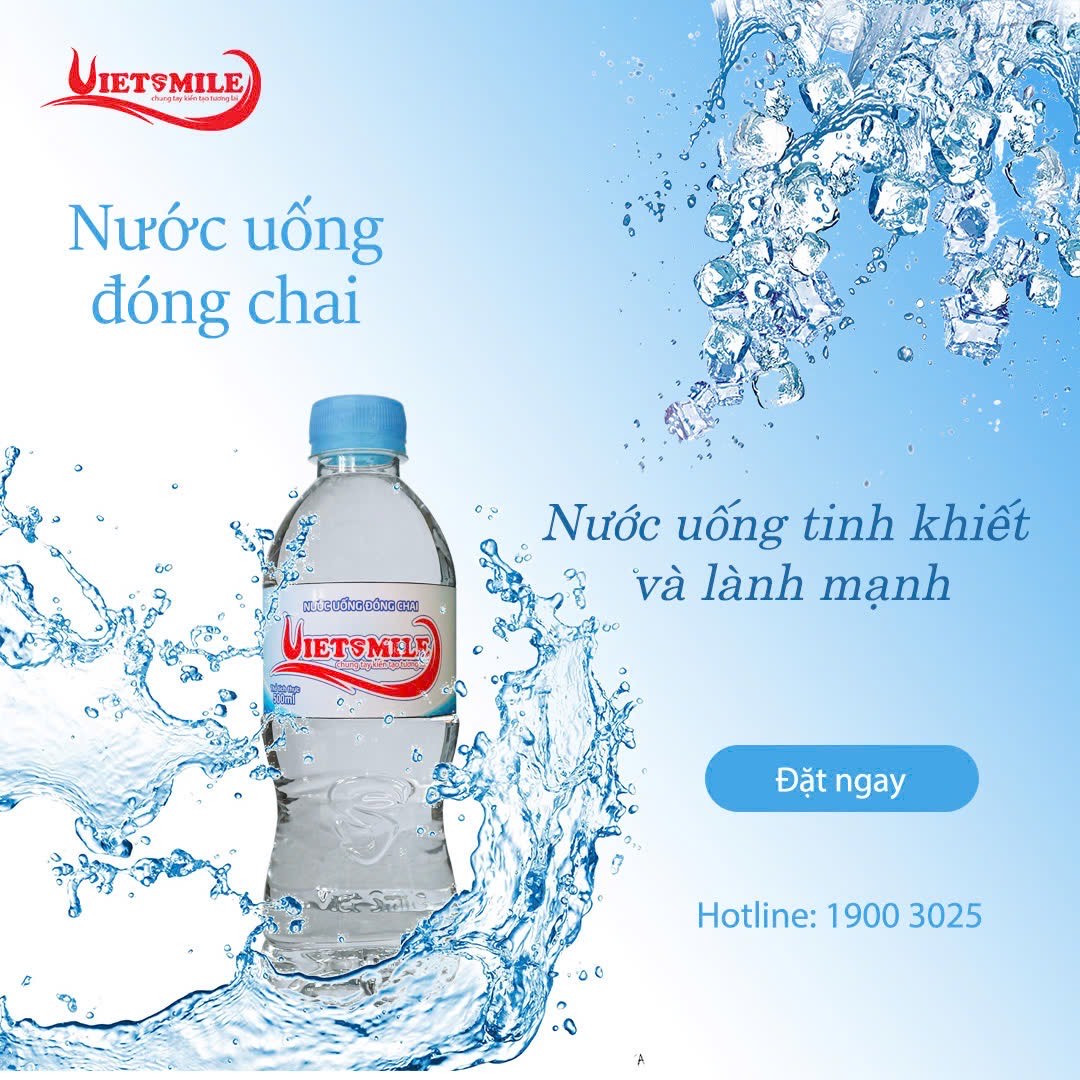 Chai nước 350ml và 330ml: Các sản phẩm nước uống dung tích nhỏ này rất phù hợp cho các sự kiện như hội nghị, hội thảo, đám tiệc, hay sử dụng trên các chuyến xe vận tải. Với thiết kế tiện lợi, gọn nhẹ, chai nước của Vietsmile Water mang đến sự tiện ích tối đa cho cả người tổ chức và người sử dụng.