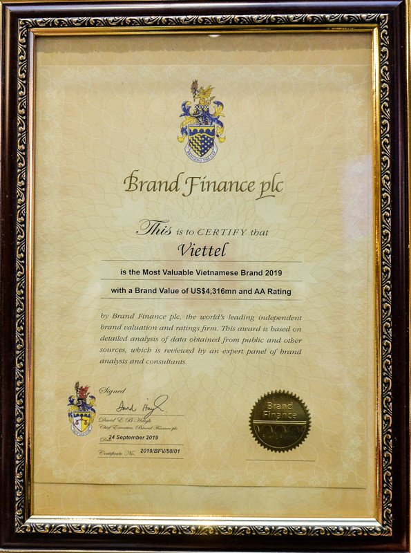 Như vậy, giá trị thương hiệu của Viettel tăng 20% tức hơn 1,5 tỷ USD so với năm 2018, có giá trị gấp gần 3 lần thương hiệu đứng thứ 2 và bằng tổng giá trị của 3 thương hiệu ở vị trí liền sau trong bảng xếp hạng. Đây là năm thứ 2 liên tiếp Viettel dẫn đầu bảng xếp hạng, thuộc Top 10 thương hiệu giá trị nhất Việt Nam.