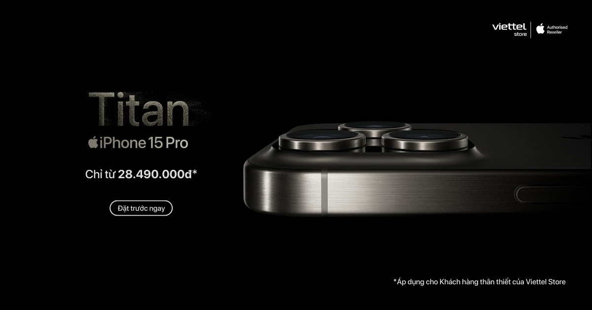 Mức giá cuối cùng khi đặt trước iPhone 15 chỉ từ 21.990.000đ khi thanh toán qua VNPAY và iPhone 15 Pro/15 Pro Max chỉ từ 28.490.000đ dành cho khách hàng thân thiết của Viettel Store. Đặc biệt, khách hàng khi mua iPhone 15 Pro/15 Pro Max thời điểm này còn được được tặng ngay voucher giảm giá 500.000đ cho các sản phẩm Apple Watch và phụ kiện Apple chính hãng theo danh sách. Với dự báo khan hiếm hàng đối với dòng sản phẩm iPhone 15 Pro Max màu Natural Titan, Viettel Store sẽ đảm bảo đủ nguồn hàng, đáp ứng nhu cầu của tất cả khách hàng.