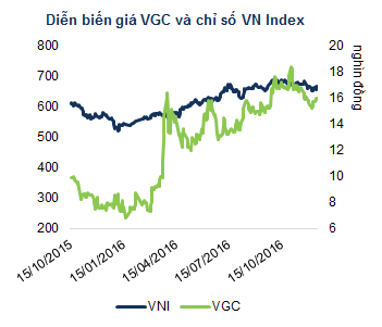 Tỷ suất lợi nhuận gộp của VGC từ năm 2014 đến nay luôn ở mức 20% trở lên cho thấy hoạt động kinh doanh của doanh nghiệp rất tốt và ổn định. Tỷ suất lợi nhuận gộp 2014 đạt 20%, năm 2015 tăng lên 22% và 9T/2016 đạt 25.2%.