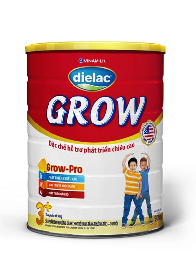 Dielac Grow với công thức Grow-Pro là thành quả nghiên cứu của các chuyên gia dinh dưỡng hàng đầu Vinamilk, chứa thành phần dưỡng chất vượt trội theo nhu cầu dinh dưỡng khuyến nghị DRI Mỹ, phù hợp với từng giai đoạn phát triển của trẻ (1-3 tuổi và 3-10 tuổi). Dielac Grow giúp trẻ phát triển tốt về chiều cao, trí não, tăng cân và khỏe mạnh hơn.