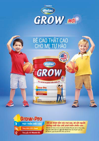 Điểm ưu việt của sản phẩm dinh dưỡng đặc chế hỗ trợ phát triển chiều cao Dielac Grow với công thức Grow-Pro là tăng thêm 30% hàm lượng canxi và gấp đôi hàm lượng vitamin D3* phù hợp với nhu cầu trẻ em trong độ tuổi phát triển chiều cao. Ngoài ra, công thức Grow-Pro còn bổ sung DHA, axít Linoleic, axít Alpha-linoleic giúp trẻ phát triển não bộ, MCT và chất xơ hòa tan FOS cùng hệ men vi sinh Bifidobacterium, BB-12TM và các dưỡng chất chống ôxy hóa như vitamin A, C, E, khoáng chất giúp trẻ tăng cân và khỏe mạnh.