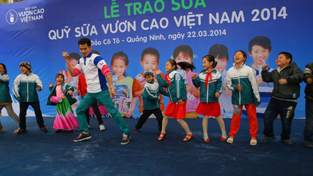 Là đơn vị tài trợ duy nhất cho chương trình Quỹ sữa “Vươn Cao Việt Nam” liên tiếp 6 năm liền, Bà Bùi Thị Hương - Giám đốc Đối ngoại của Vinamilk chia sẻ: “Trẻ em ở huyện Cô Tô – Tỉnh Quảng Ninh còn gặp nhiều khó khăn trong cuộc sống vì điều kiện vật chất còn khá thiếu thốn, tuy vậy các em vẫn vượt khó để vươn lên, đó là điều rất đáng được xã hội quan tâm.